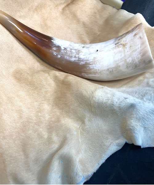 This particular horn is semi-processed, allowing for customized scrimshaw work on request. Customers may choose to have personalized designs or inscriptions etched into the horn, creating a one-of-a-kind keepsake or gift.