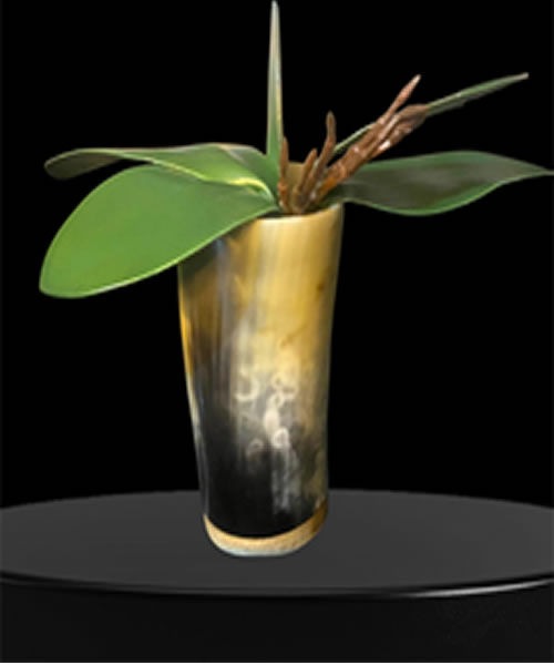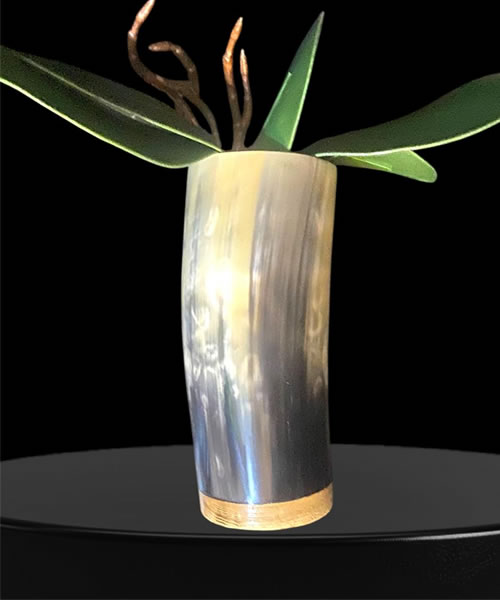 Elegant horn flower vase handcrafted from sustainable Ankole cow horn. Perfect for wall or tabletop décor, Available in XL, L, and M sizes to suit your style.